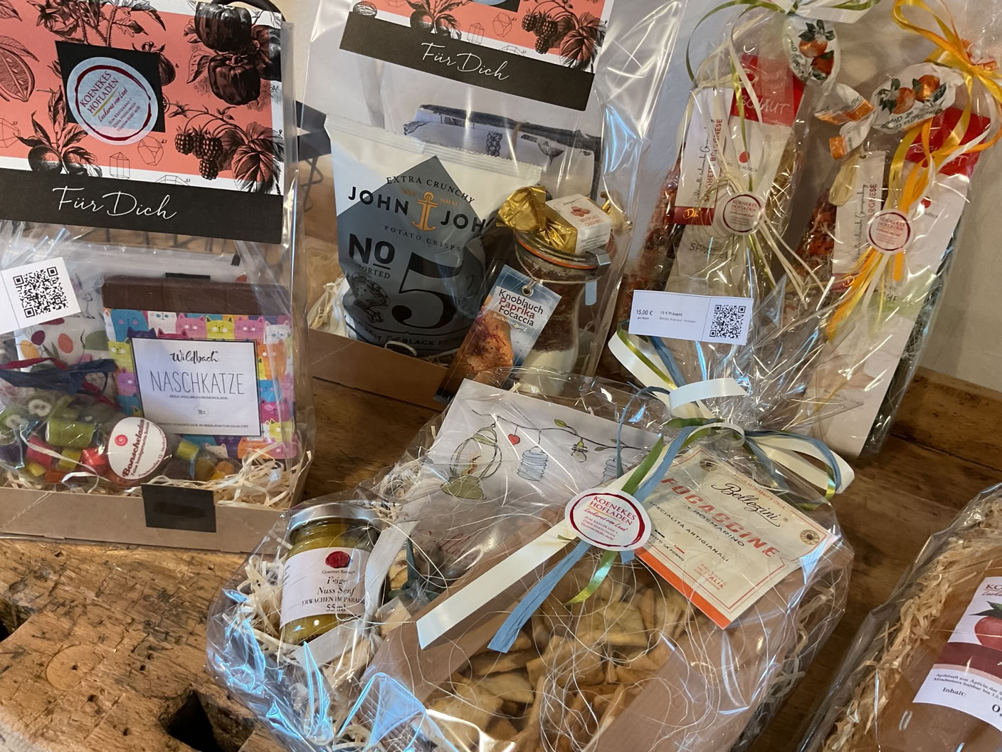 In unserem Hofladen in der fast 100-jährigen umgebauten Scheune werden neben den eigenen Erzeugnissen auch viele frische Produkte befreundeter Betriebe angeboten. Aus diesen entstehen auf Kundenwunsch Präsentkörbe der besonderen Art – mit ein bisschen mehr Landliebe. Neben den vielen kulinarischen Angeboten, finden Sie hier auch schöne Dinge für Heim und Garten.